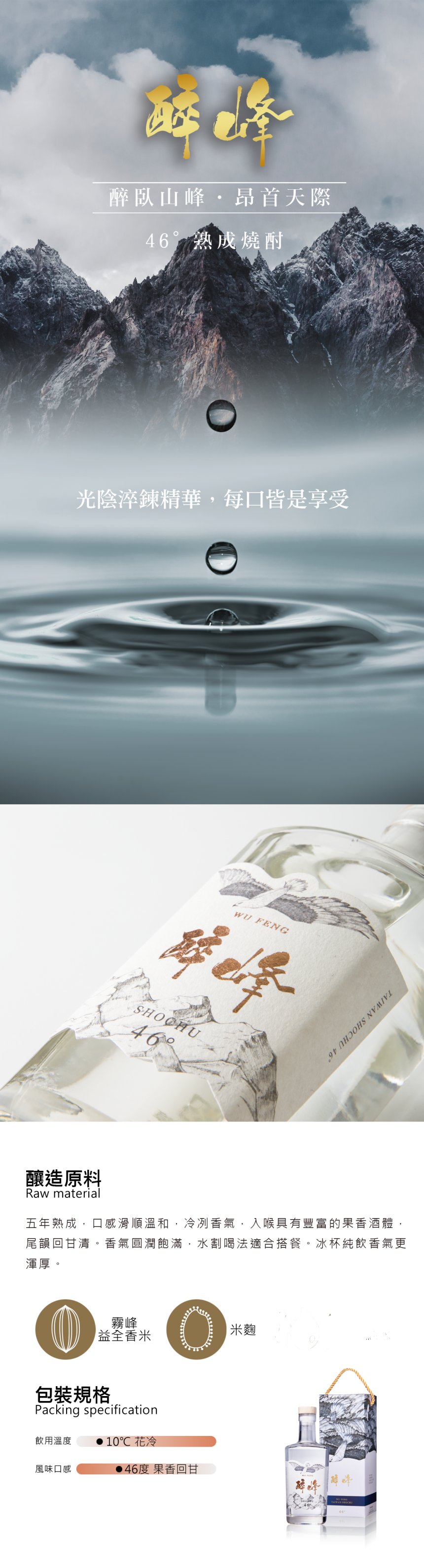 口感簡述:冷冽香氣,入喉具有豐富的果香酒體,尾韻回甘清爽